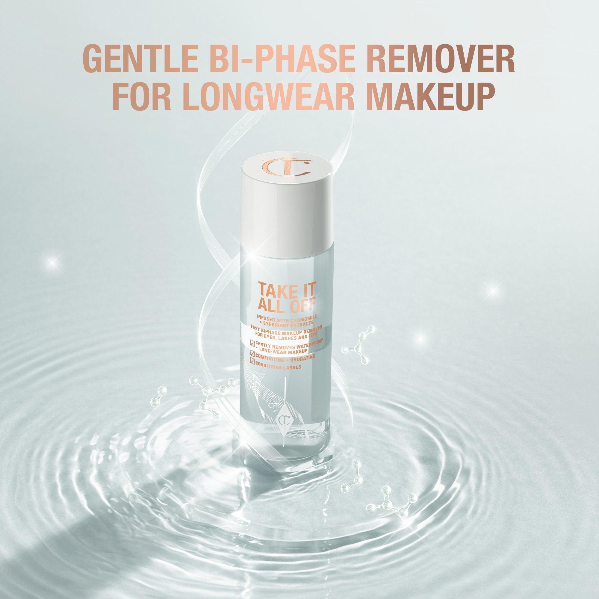 A gentle, bi-phase formula for eyes, lashes, and lips that effortlessly removes long-wear and waterproof makeup.