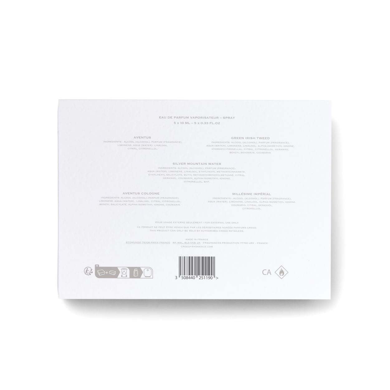 5-piece gift set featuring Aventus, Green Irish Tweed, Silver Mountain Water, Aventus Cologne and Millesime Imperial.