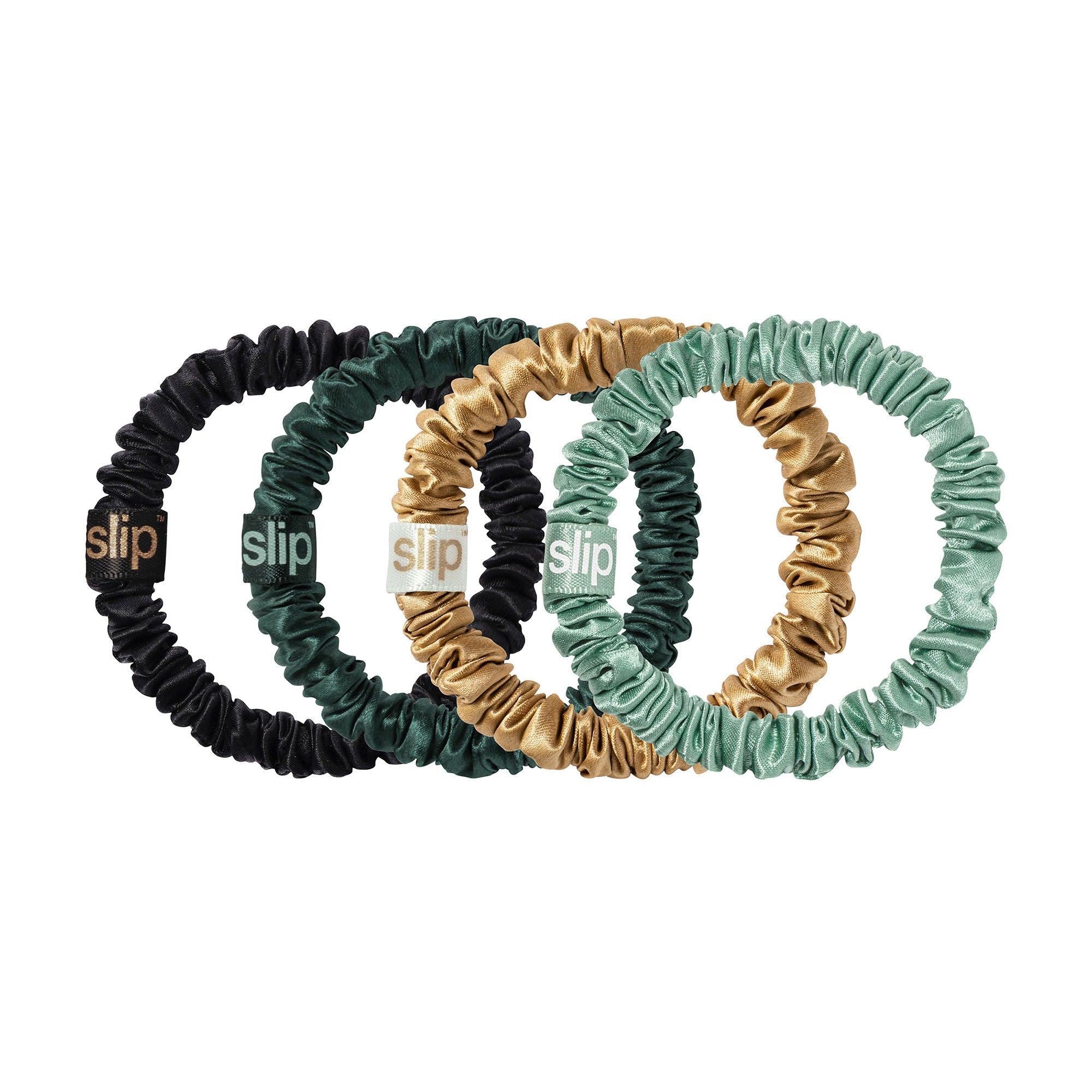 A set of four award-winning slip scrunchies. Designed to be anti crease, anti breakage.