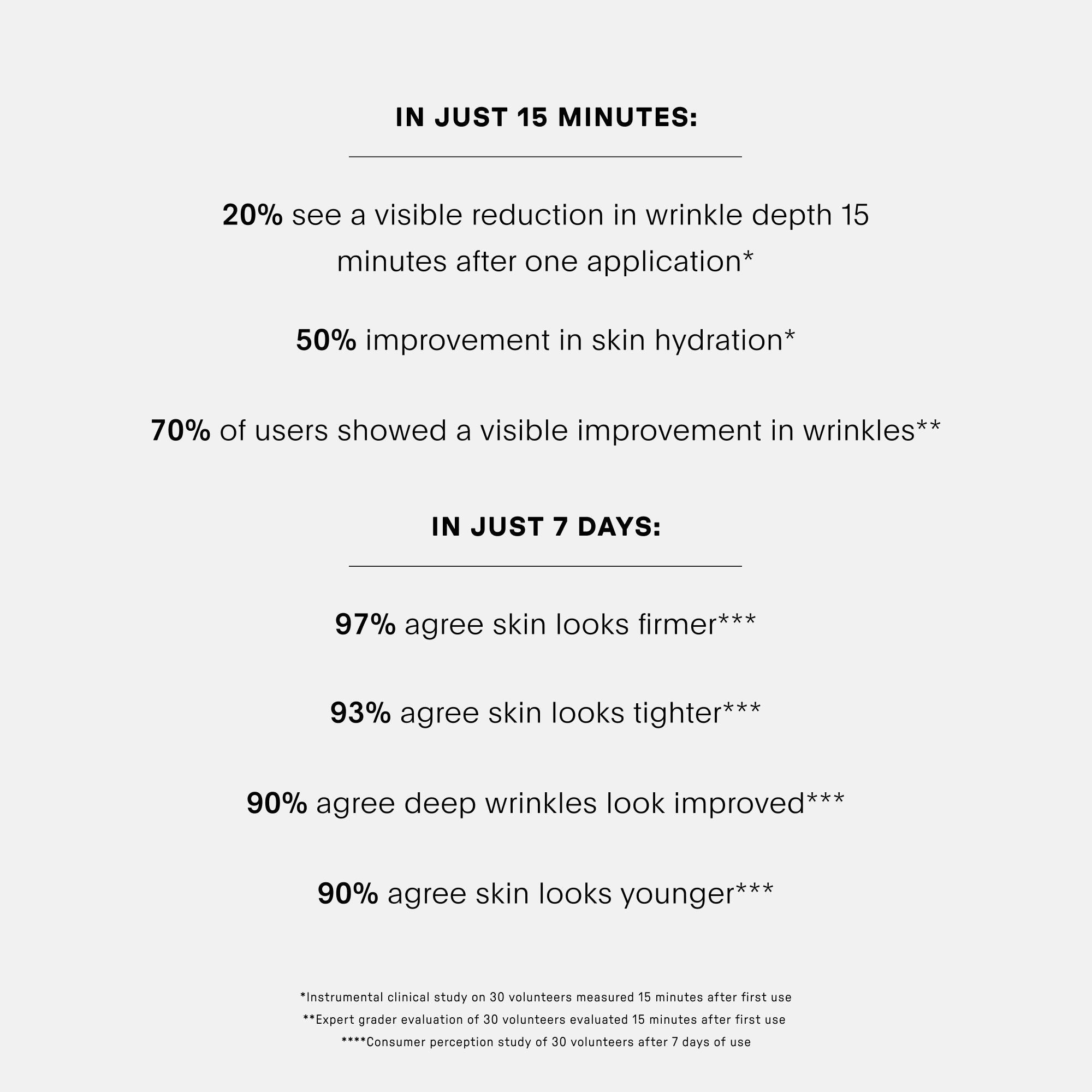 A dynamic wrinkle technology that helps visibly smooth past lines, support present skin, and enhance its future resilience.